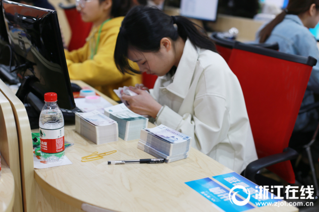 在全国技能大赛中屡获佳绩,本次也斩获头奖的金华职业技术学院领队单松分享了经验:“比赛对选手的心理素质要求很高,所以我们平时会有意识地训练这方面的内容。比如训练点钞项目时,会故意在他旁边说话,还会用五台手机在旁边播放点钞的声音,这些都是为了提高选手的专注度。”