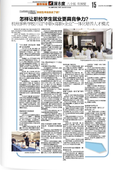 都市快报:怎样让职校学生就业更具竞争力? 杭州多所学校开启“中职+高职+企业”一体化培养人才模式