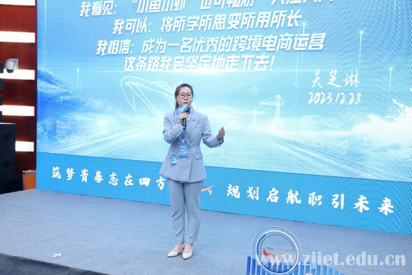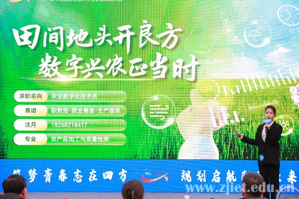 决赛现场,我校参赛选手结合自身专业,分析外部的行业发展趋势及就业需求,陈述自己的职业目标并进行精彩答辩,充分展示对职业规划的理解和求职就业的思考。真实、生动、精彩的职业展示和规划让评审专家和观众们感受到了浙江经贸学子朝气蓬勃、开拓进取的精神风貌和胸怀家国的责任担当。跨境电子商务专业2021级学生关芝琳,以“跨境出海,运‘赢’未来”为主题陈述跨境电商运营师的求职目标,荣获职教组就业赛道金奖;传播与策划专业2021级学生贺馨逸,以“‘馨’归一片海,‘逸’向一座岛”为主题讲述成为基层党群工作宣传干事的故事,荣获职教组就业赛道金奖;农产品加工与质量检测专业2022级学生徐潇潇,分享了自己作为OO后“新农人”,争做致富“兴农人”的乡村CEO成长之路,荣获职教组成长赛道金奖。残疾人赛道的高嘉函,一名动漫制作技术专业中高职一体化五年制的大一学生,五岁那年因用药不当而导致听力残障,她自强不息、乐观开朗,立志成为数字时代的“神笔马良”做一名3D角色建模师,赢得现场评委高度赞赏。