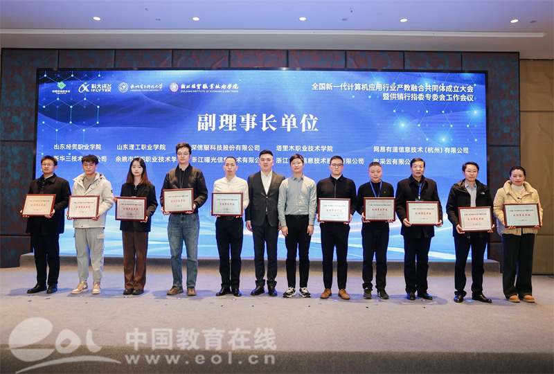 大会为安徽商贸职业技术学院、广西经贸职业技术学院等10家首批加入共同体的常务副理事长单位授牌,为贵州经贸职业技术学院、杭州城市大脑技术与服务有限公司等20家副理事长单位授牌。