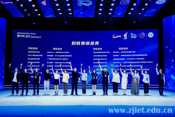 7月19日至21日,“建行杯”浙江省国际大学生创新大赛(2024)在杭州师范大学仓前校区举行。我校2个项目入围决赛斩获金奖1项、银奖1项,并荣获优秀组织奖。学校党委委员、副校长何学军应邀出席闭幕式暨颁奖典礼。